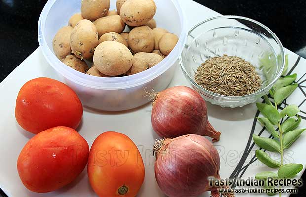 - Keep all the ingredients ready for making Punjabi Dum Aloo. Boil the baby potatoes only with 2 whistles, to prevent them from breaking. Peel and Keep aside.