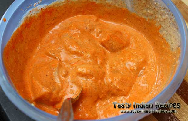 Mix all the ingredients very well and coat the Chicken Pieces in Marinade. Cover the chicken and Keep this marination aside at least for 30-40 minutes. You can keep the chicken in refrigerator as well.