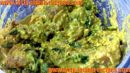 - In a big bowl combine the chicken, yogurt, above ground paste, salt, lemon juice, red chilli powder, turmeric powder, coriander powder, garam masala powder, coriander and mint chopped.