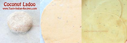 - Divide the dough into small equal portions. Roll out each portion into 4-5 inches roti with rolling-pin. Use dry wheat flour if required for rolling smoothly.